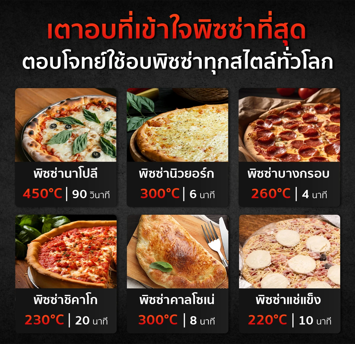 | เวลาอบพิซซ่า | 1 – 3 นาที |