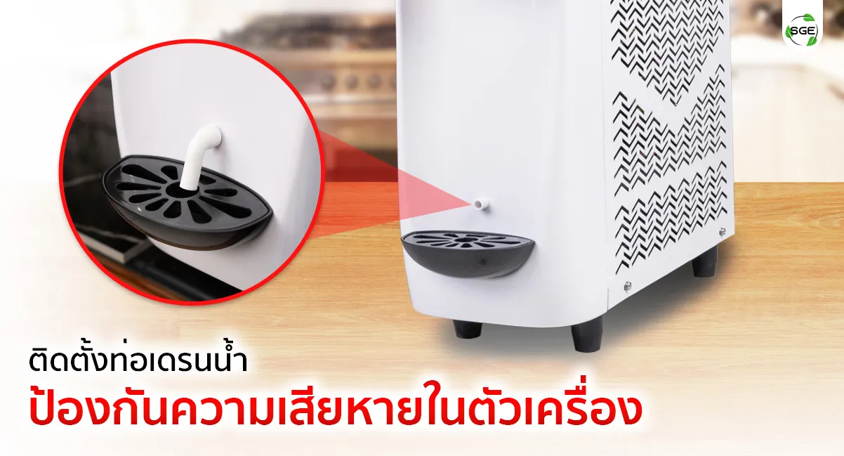 หมดกังวลเรื่องไอน้ำควบแน่น เกาะภายในตัวเครื่อง จนอาจสร้างความเสียหายให้กับระบบไฟฟ้า ด้วยการติดตั้งท่อเดรนน้ำ เพื่อลำเลียงน้ำควบแน่นออกมา หมดกังวลเรื่องความปลอดภัย ใช้งานเครื่องได้ยาวนาน