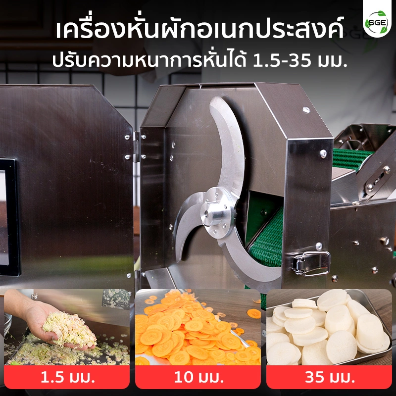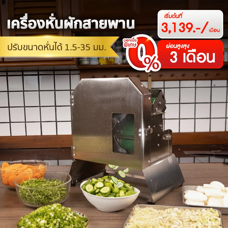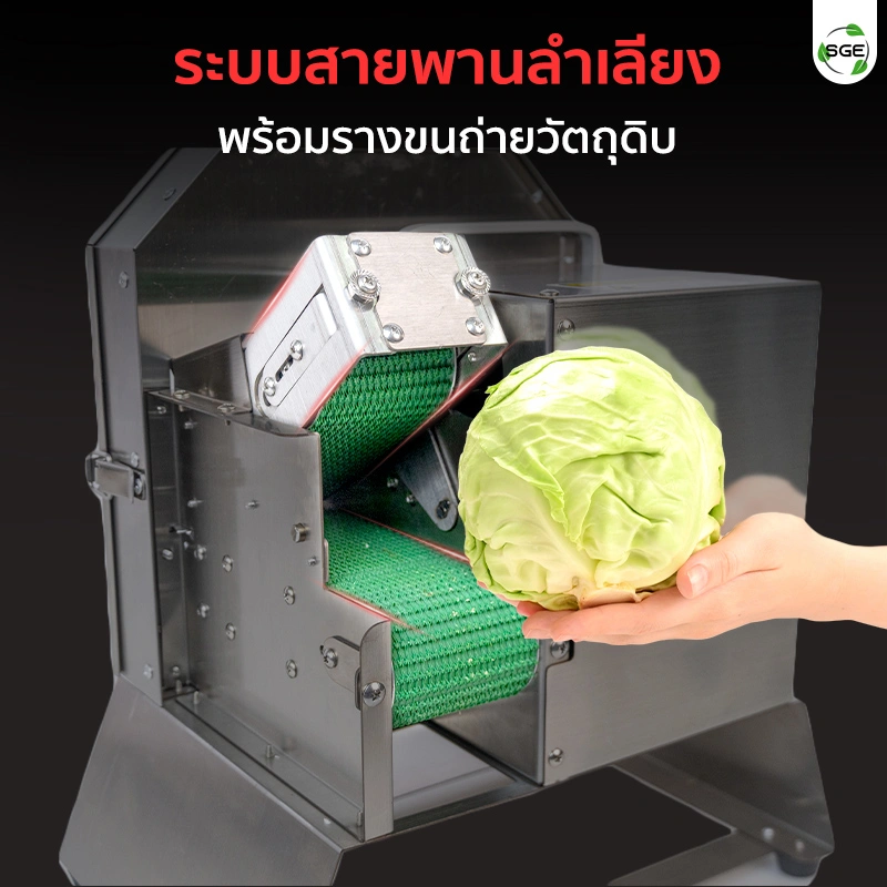 เครื่องหั่นผักสายพาน เปลี่ยนขั้นตอนการเตรียมผักให้ง่ายกว่าเดิม แค่ใส่ผัก แล้วปล่อยให้เครื่องทำงานแทนคุณ ด้วยระบบสายพานลำเลียง และใบมีดกังหัน 3 แฉก หั่นคม ฉับไว ขนาดเท่ากันทุกชิ้น ตอบโจทย์ธุรกิจที่ต้องการลดเวลาทำงาน-เพิ่มกำลังผลิต