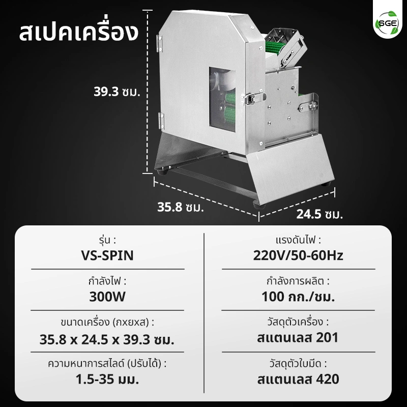 ตารางสเปค เครื่องหั่นผักสายพาน