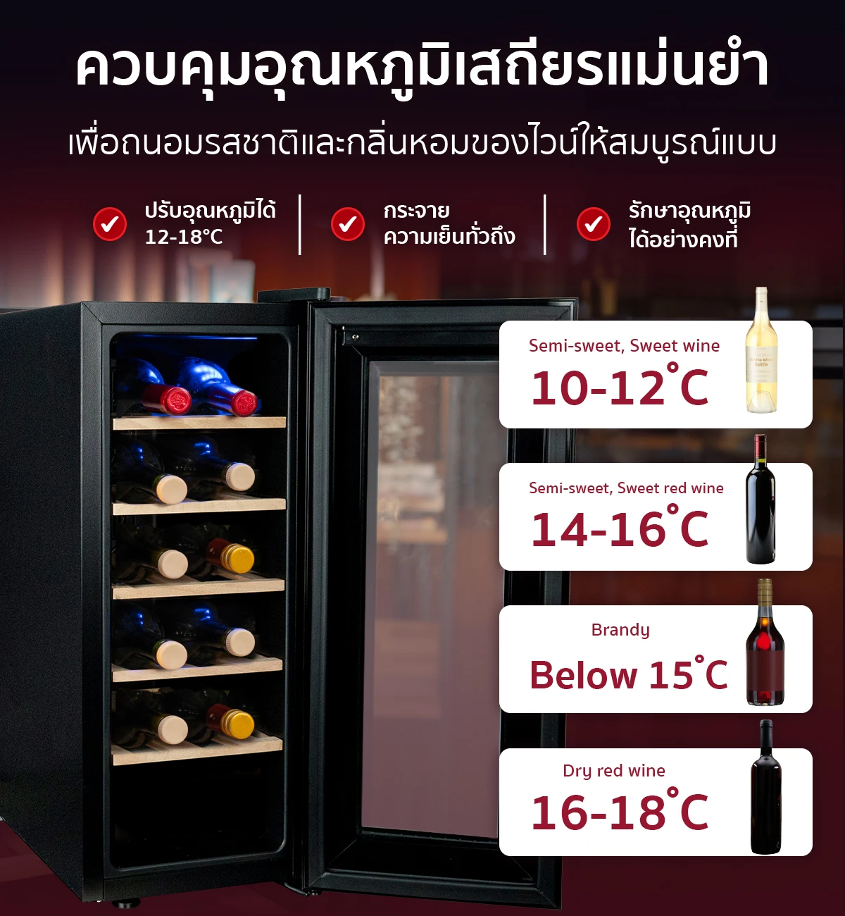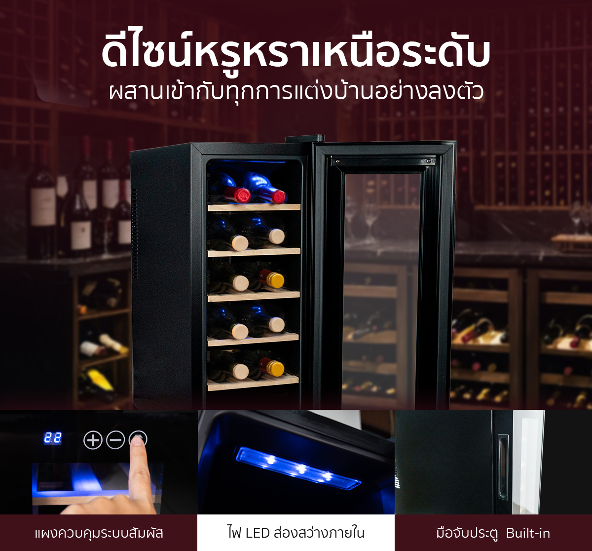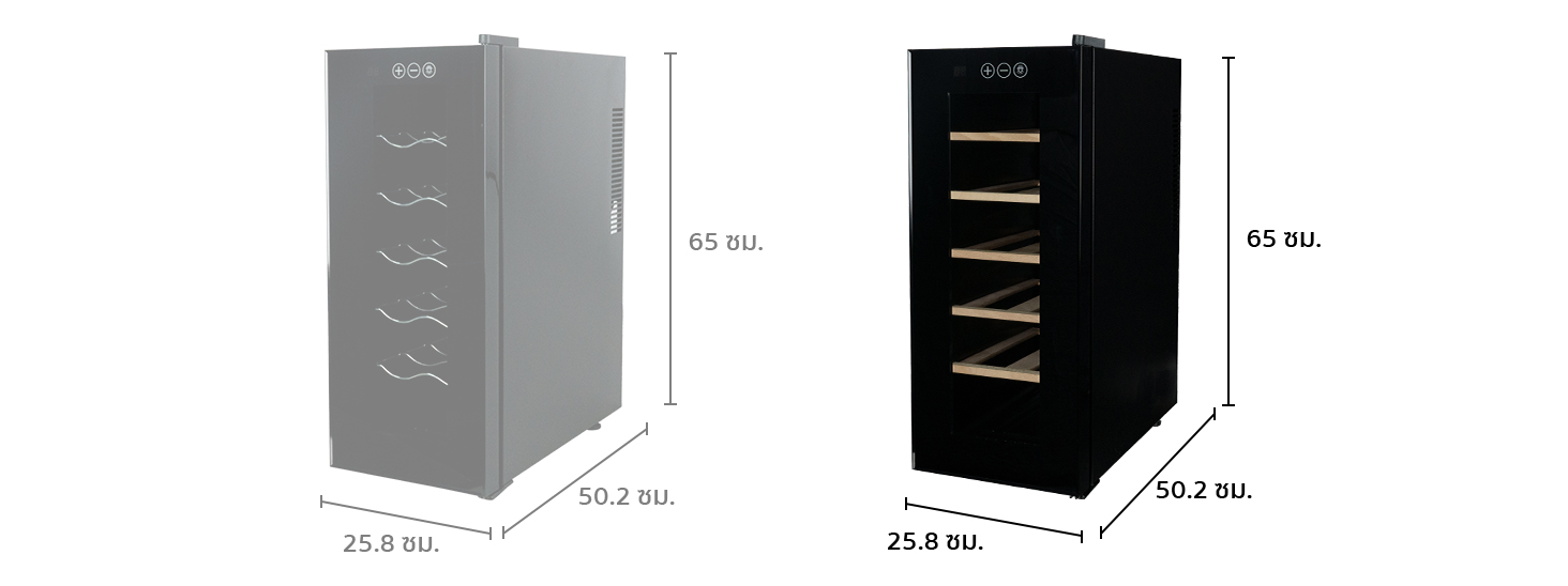 คุณสมบัติ ตู้แช่ไวน์ ขนาดเล็ก ขนาดบรรจุ 12 ขวด (ชั้นวางไม้)