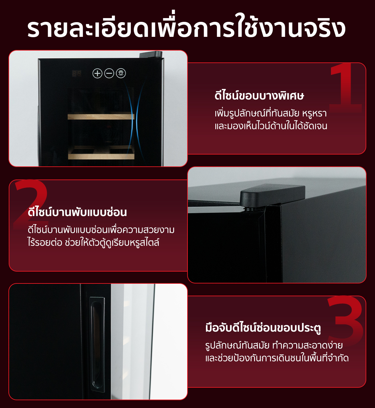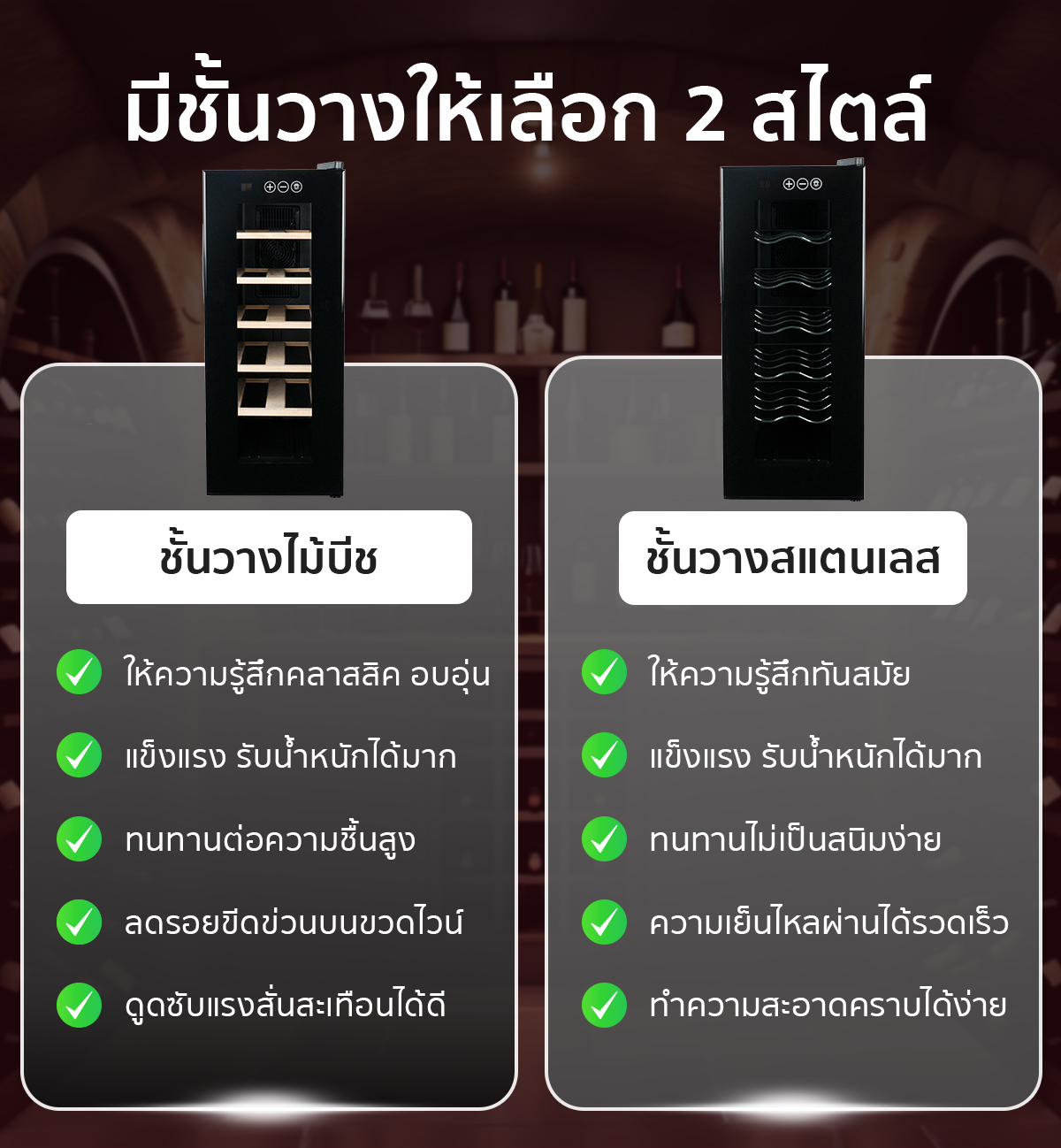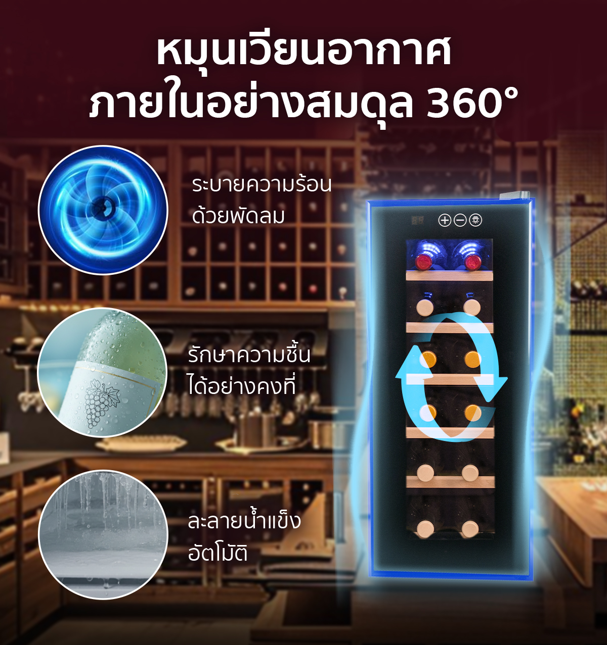 คุณสมบัติ ตู้แช่ไวน์ ขนาดเล็ก ขนาดบรรจุ 12 ขวด (ชั้นวางไม้)