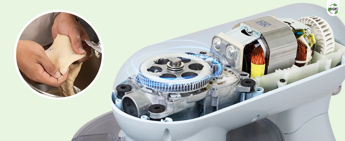 อัพเกรดวัสดุ เพิ่มประสิทธิภาพการทำงาน มาพร้อมชุดส่งกำลังเฟืองอะลูมิเนียมหล่อ เพิ่มความทนทาน ไม่แตกหักง่าย จะตีแป้งหนัก แป้งเบา ก็ทำได้