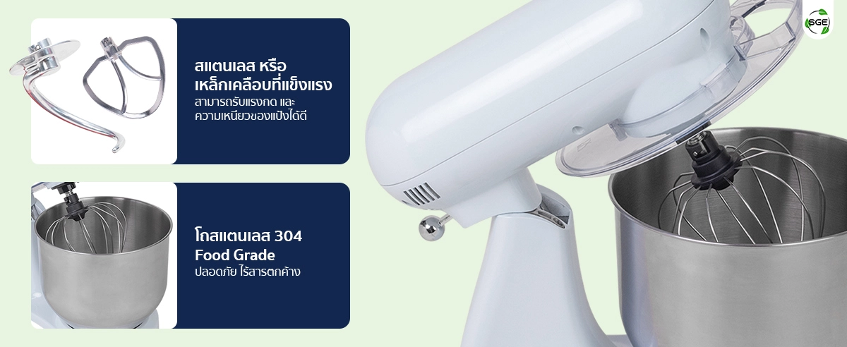 - โถผสมควรเป็น สแตนเลส Food Grade ที่ปลอดสนิม ทนทาน และทำความสะอาดได้