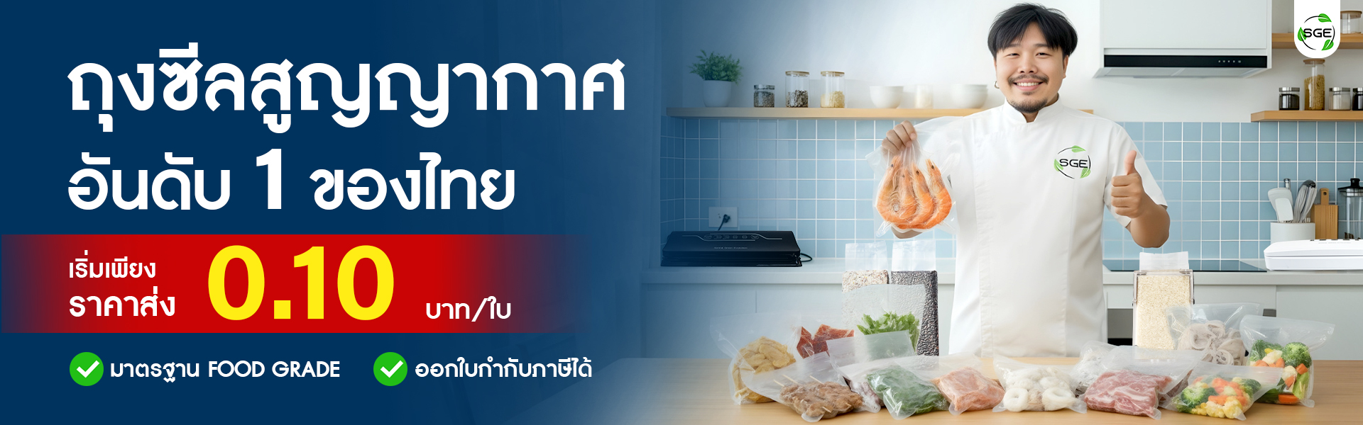 เลือกถุงซีลให้เหมาะกับเครื่องซีลสูญญากาศของคุณ เพื่อให้ซีลแน่นสนิท ดูดอากาศได้เต็มกำลัง และยืดอายุอาหารได้ยาวนานที่สุด SGE รวบรวมรุ่นเครื่องซีลที่รองรับถุงแต่ละประเภทไว้ให้แล้ว